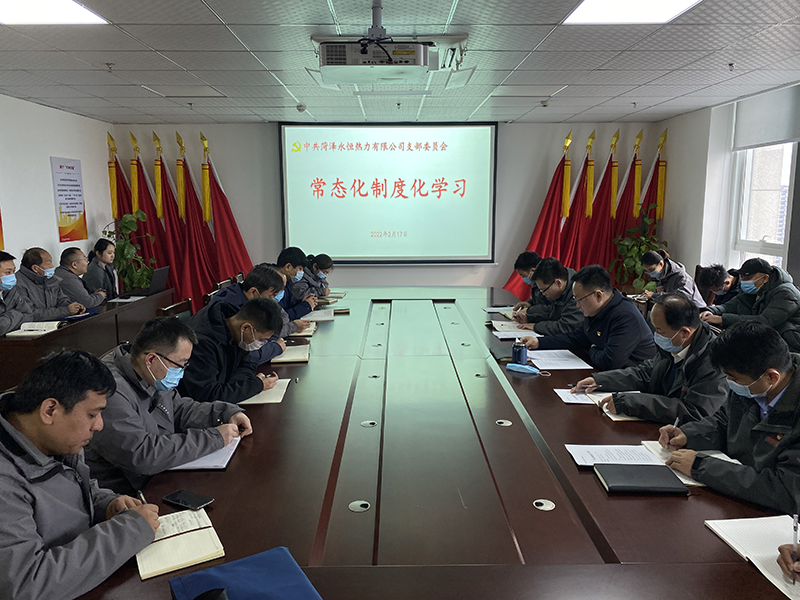 為提升黨員干部擔當奉獻精神,強化宗旨意識、廉潔意識,充分發揮先鋒模范作用,不斷鞏固拓展黨史學習教育成果,2月17日上午,菏澤永恒熱力有限公司黨支部開展專題學習。黨支部書記肖培飛主持會議,全體黨員、發展對象、入黨積極分子、中層副職及以上干部參加學習。