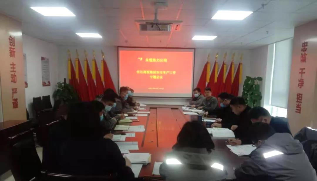 1月21日,永恒熱力公司召開了安全生產工作會議,專題傳達落實《全市安全生產隱患大排查大整治工作方案》文件精神,董事長肖培飛同志主持會議,公司中層副職以上人員參加會議。