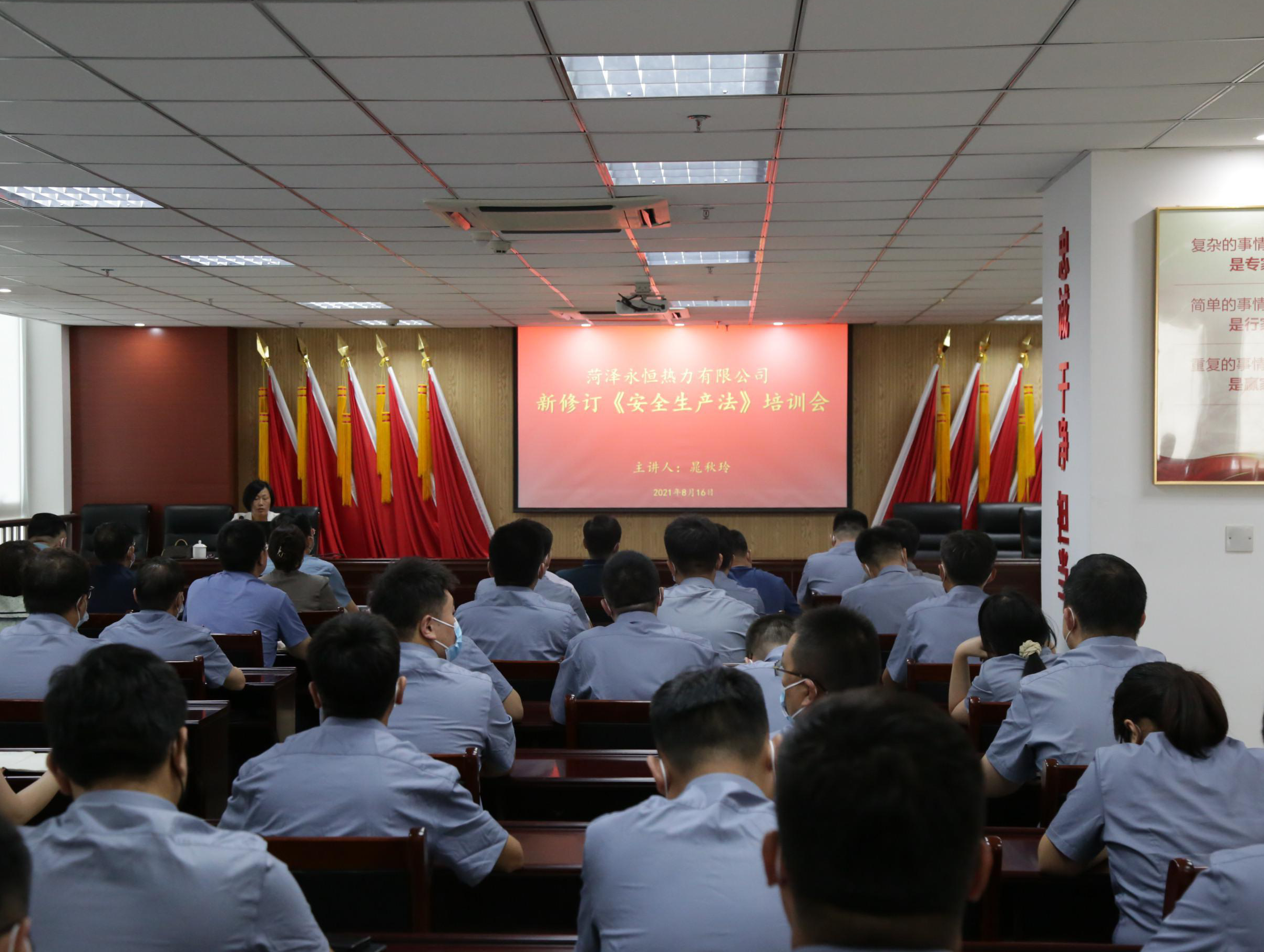 為深入學習宣傳和貫徹落實新《安全生產法》,全面加強安全生產法治觀念,提升企業安全管理水平,8月16日下午,菏澤永恒熱力有限公司邀請安全專家晁秋玲老師到公司開展新《安全生產法》培訓講座,公司中層副職以上人員,各部室安全員、消防員共計50余人參加培訓。