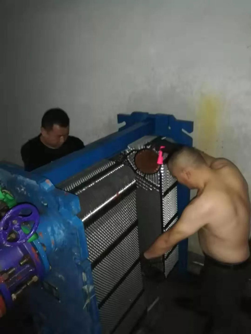 時間不等人,孫明飛和于慶強商量維修方案后,抓緊開展了搶修工作。室內空間狹小,但是他們依然克服各種困難,手抬肩扛,把120余片換熱片拆卸了下來。停循環泵、二網泄壓、逐一拆卸、清理銹蝕、排查漏點、封堵漏點……搶修工作有條不紊地進行著,隨著循環泵投入運行,一切終于恢復了正常,此時才下午2點鐘,兩個人只用了3個小時就完成了搶修工作,在人手缺乏的情況下,硬是將維修時間縮短了一半!而他們,早已是大汗淋漓,更別提已經錯過的午飯。