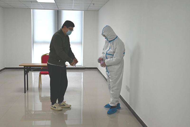 疫情防控應(yīng)急指揮部組長(zhǎng)肖培飛獲悉情況后,第一時(shí)間命令啟動(dòng)應(yīng)急處置預(yù)案,兩位身著防護(hù)服的防疫小組成員迅速抵達(dá)現(xiàn)場(chǎng),引導(dǎo)該員工到隔離室隔離。隨后,疫情防控應(yīng)急指揮部按要求向集團(tuán)公司、社區(qū)、衛(wèi)生防疫等部門(mén)進(jìn)行報(bào)備,并根據(jù)要求,安排專(zhuān)車(chē)將該員工轉(zhuǎn)移至熱定點(diǎn)收治醫(yī)院進(jìn)行進(jìn)一步檢查。