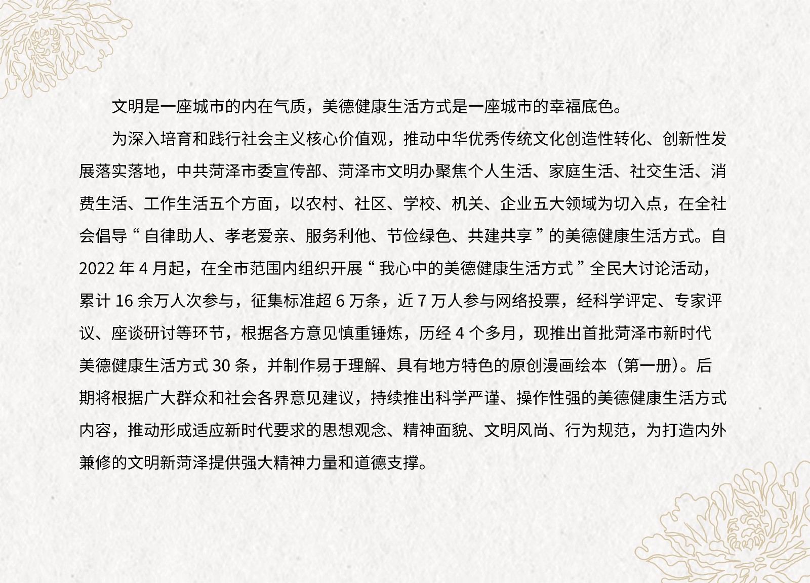 菏澤市首批新時代美德健康生活方式30條