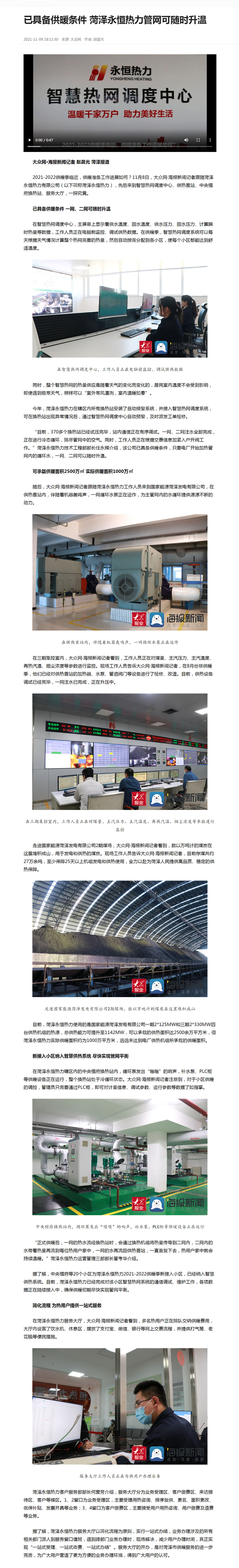 大眾網·菏澤:已具備供暖條件菏澤永恒熱力管網可隨時升溫