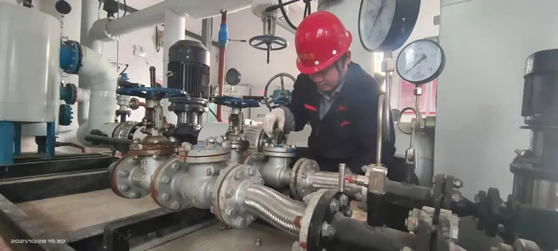 除了新接小區的供暖工作,運營管理三部同時也在進行區域供暖管路、管道、閥門等設備設施全面排查檢修,并組織人員緊跟檢修一線,及時解決排查過程中出現的難題和隱患,精心維護,層層把關,有效避免跑冒滴漏的現象發生。