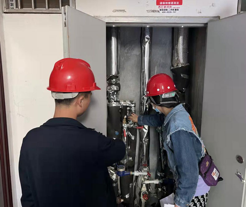 打壓試水期間,運營管理五部員工提前集合在小區換熱站,以給各小區正常供暖留足充分運行調試時間。在換熱站及小區內二網管道進行補水時,逐棟逐層檢查閥門井內閥門狀態,并對新供暖用戶進行逐戶試壓。目前,小區打壓試水、閥門改造等供暖準備工作進入緊鑼密鼓的收尾中。