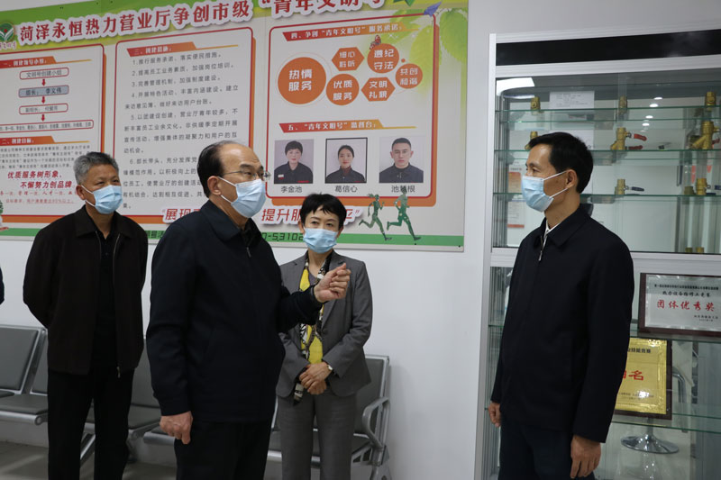 10月29日,市委副書記、市長張倫到永恒熱力服務(wù)大廳調(diào)研城區(qū)集中供熱工作。市政府副市長王忠想,市政府副秘書長、辦公室主任王新國,市政府副秘書長許尚欽,市發(fā)改委副主任、能源局局長宋述亮,市城管局局長王桂榮,市政府研究室主任劉建東,牡丹區(qū)委副書記、區(qū)長尹茂林等參加調(diào)研。菏投集團黨委書記、董事長徐文芹,菏投集團黨委委員、副總經(jīng)理、永恒熱力黨支部書記、董事長肖培飛陪同調(diào)研。