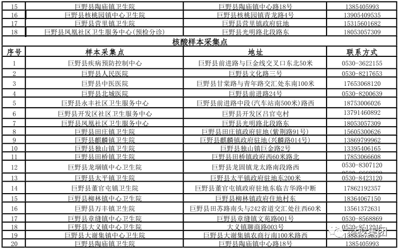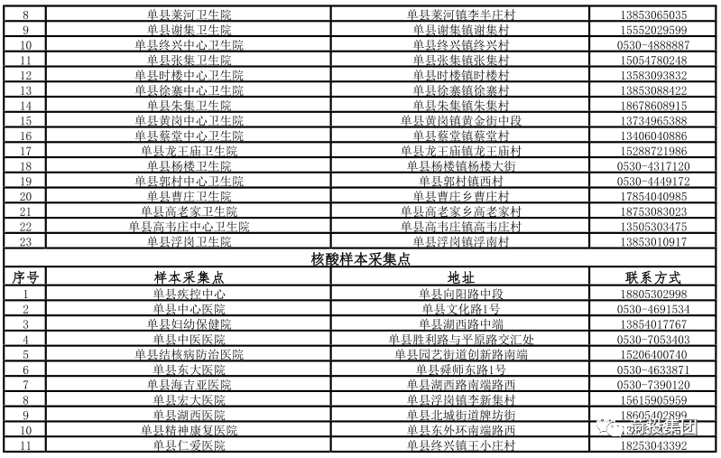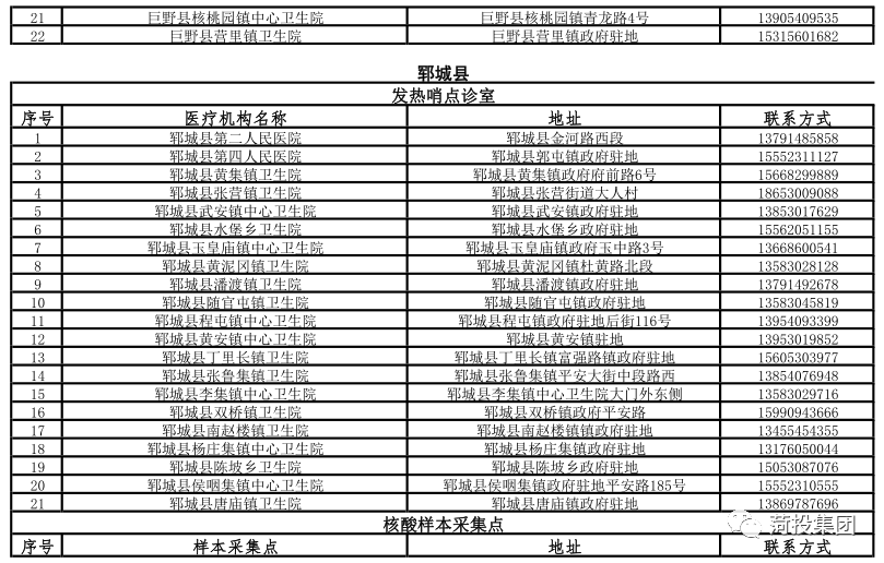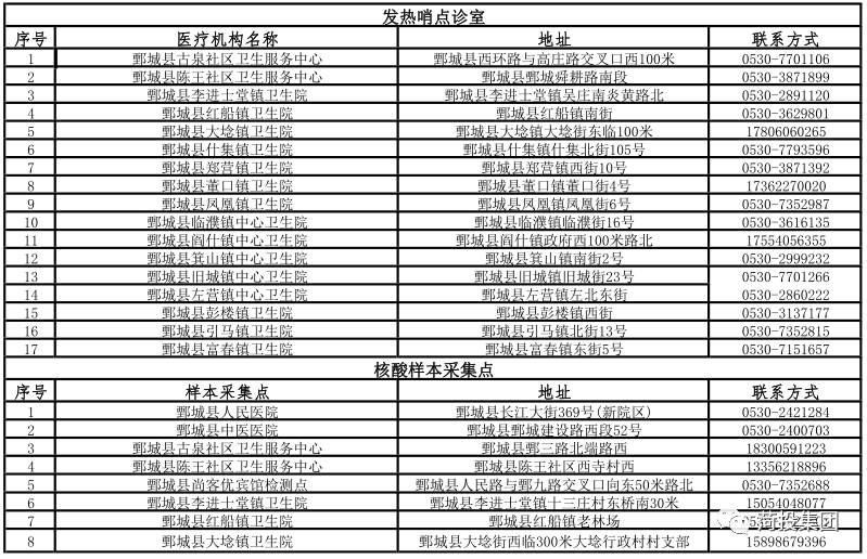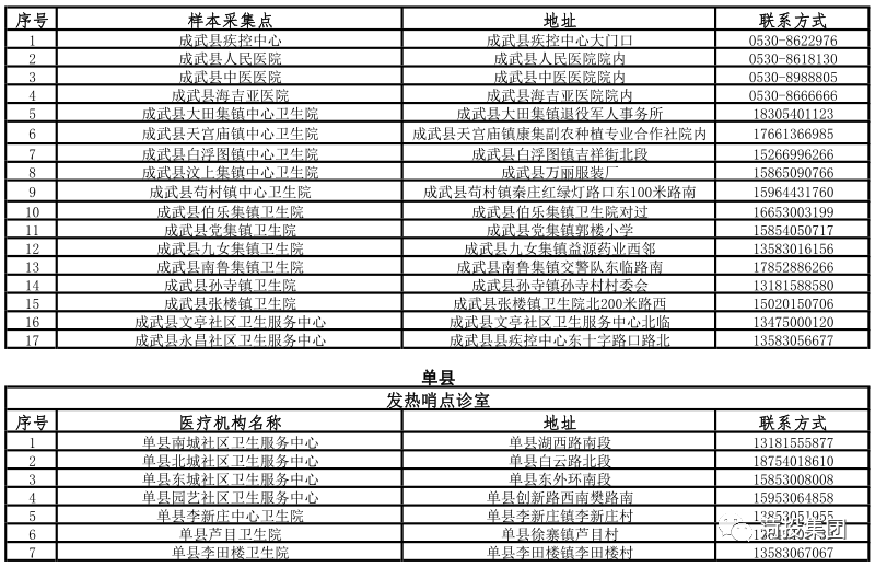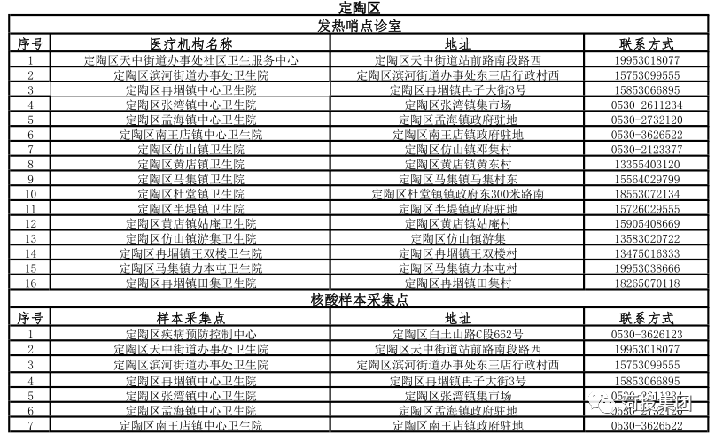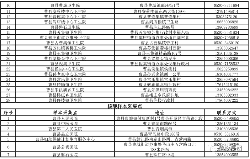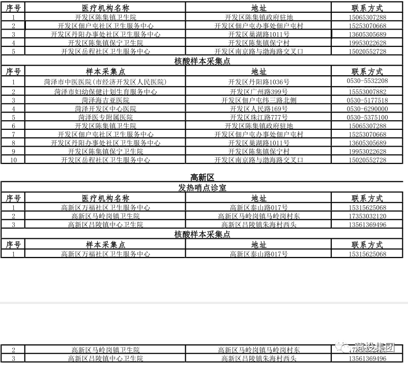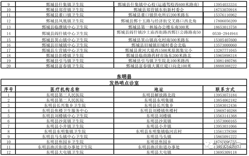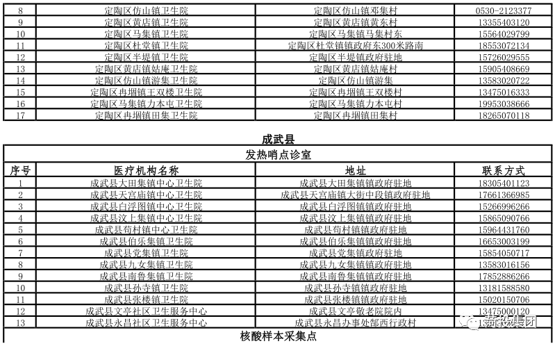 附件:菏澤市設有發熱哨點診室的基層醫療衛生機構和核酸樣本采集點名單