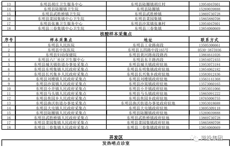 關于公布菏澤市設有發熱哨點診室的基層醫療衛生機構和核酸樣本采集點名單的通知