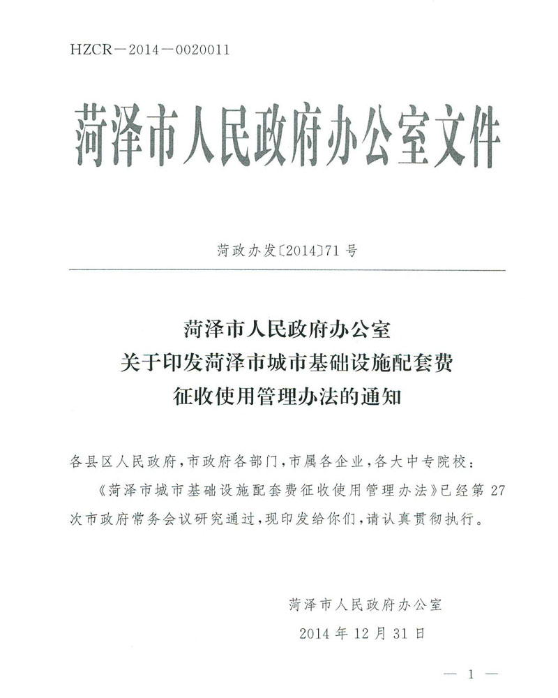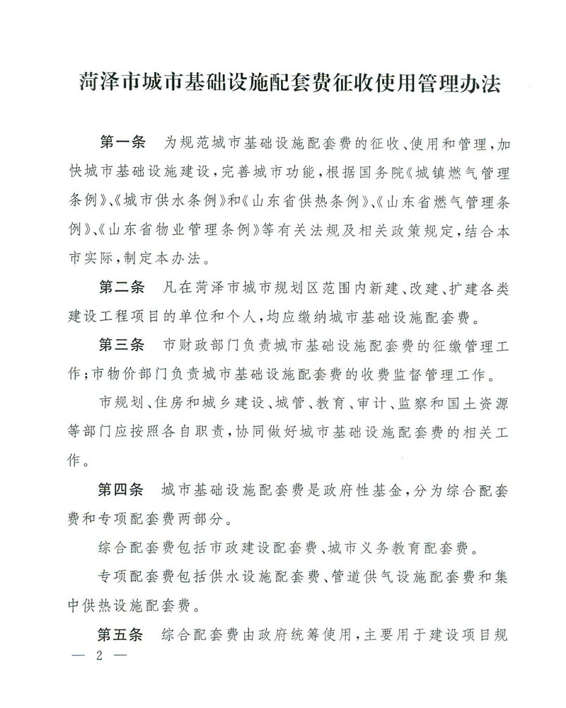 菏澤市城市基礎設施配套費征收使用管理辦法